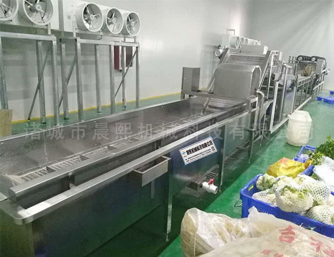 設備除電機、軸承等標準件外均采用不銹鋼材料制作,完全符合出口食品衛生要求。蔬菜清洗設備中設有氣泡發生裝置,使物料呈翻滾狀態,去除產品表面農殘功效,同時可加入適量的藥劑,進行消毒固色,漂浮物可以從溢流槽溢出,沉淀物從口排出,以達到清洗的目的。