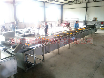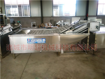 一般來說,根莖類作物凈菜加工流水線包括以下設(shè)備挑選輸送帶→提升機→加高去皮毛輥清洗機--氣泡清洗機→消毒殺菌清洗機→高壓噴淋清洗機---多功能蔬菜分切機→漂燙冷卻機→風(fēng)干瀝水機---傳送帶等設(shè)備組成,具體組成設(shè)備根據(jù)客戶工藝來訂制。